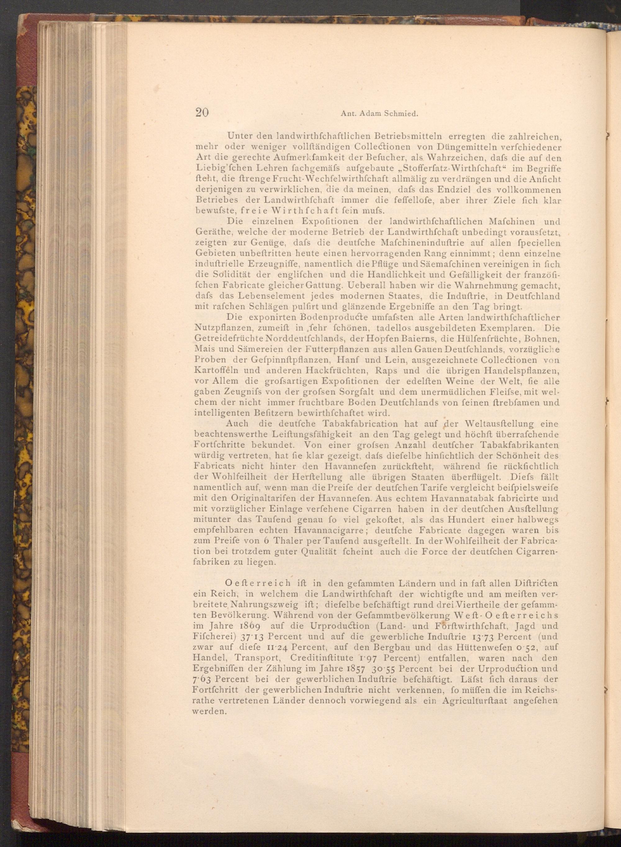 Die einzelnen Expofitionen der landwirthfchaftlichen Maſchinen und Geräthe, welche der moderne Betrieb der Landwirthschaft unbedingt vorausfetzt, zeigten zur Genüge, dafs die deutfche Mafchineninduftrie auf allen fpeciellen Gebieten unbeftritten heute einen hervorragenden Rang einnimmt; denn einzelne induftrielle Erzeugniffe, namentlich die Pflüge und Säemaſchinen vereinigen in fich die Solidität der englifchen und die Handlichkeit und Gefälligkeit der franzöfifchen Fabricate gleicher Gattung. Ueberall haben wir die Wahrnehmung gemacht, dafs das Lebenselement jedes modernen Staates, die Induftrie, in Deutſchland mit rafchen Schlägen pulfirt und glänzende Ergebniffe an den Tag bringt.