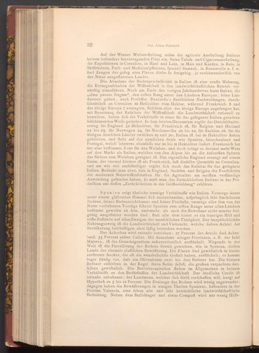 Auf der Wiener Weltausstellung nahm die agricole Ausftellung Italiens keinen befonders hervorragenden Platz ein. Seine Tabak- und Cigarrenausftellung, die Expofitionen in Cerealien, in Hanf und Lein, in Mais und Karden, in Reis, in Südfrüchten, Farb- und Medicinalpflanzen, fpeciell Sumach, in Baumwolle u. f. w. find Zeugen der gefeg eten Fluren diefes fo freigebig, ja verfchwenderifch von der Natur ausgeftatteten Landes.