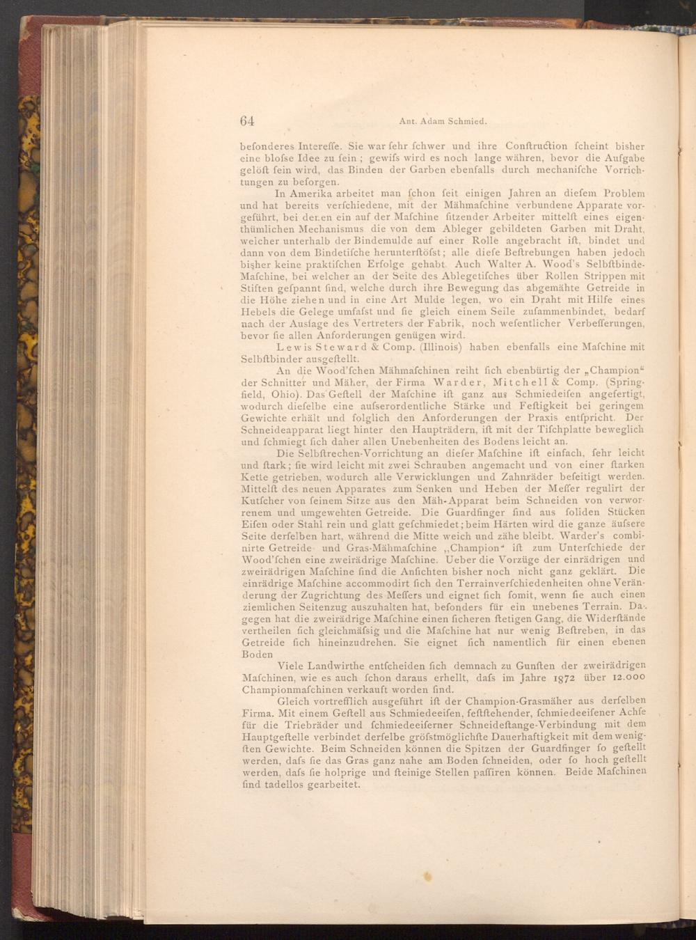 Viele Landwirthe entfcheiden fich demnach zu Gunften der zweirädrigen Maſchinen, wie es auch fchon daraus erhellt, dafs im Jahre 1872 über 12.000 Championmafchinen verkauft worden find.