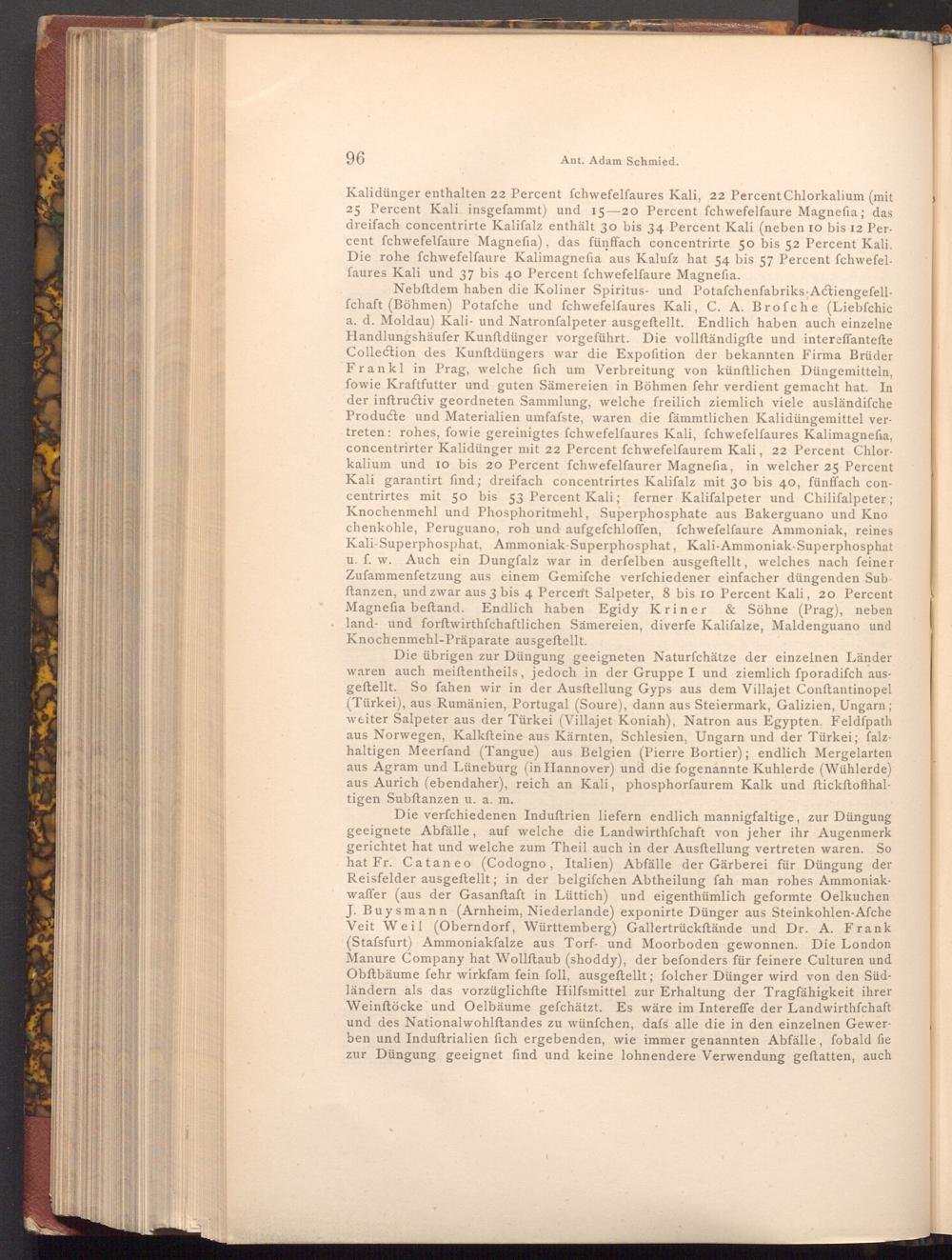 Kalidünger enthalten 22 Percent fchwefelfaures Kali, 22 Percent Chlorkalium( mit 25 Percent Kali insgefammt) und 15-20 Percent fchwefelfaure Magnefia; das dreifach concentrirte Kalifalz enthält 30 bis 34 Percent Kali( neben 10 bis 12 Percent fchwefelfaure Magnefia), das fünffach concentrirte 50 bis 52 Percent Kali. Die rohe fchwefelfaure Kalimagnefia aus Kalufz hat 54 bis 57 Percent fchwefelfaures Kali und 37 bis 40 Percent fchwefelfaure Magnefia.