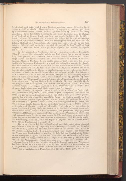 Deutfchland und Oefterreich- Ungarn häufiger angebaut wurde, Schlefien durch fchöne fchlefifche Gerfte, Hermannftädter Gebirgsgerfte, welche per Joch 13 niederösterreichifche Metzen Körner à 70 Pfund und 24 Centner Strohertrag gibt, fowie durch fchottifche Annatgerfte mit einer Fechfung von 36 Metzen 74 Pfund und 40 Centner Stroh per Joch, und durch Probfteier Gerfte( Herrfchaft Tefchen), Steiermark durch fchöne vierzeilige Gerfte und fechszeilige Wintergerfte( Rettema) vertreten. Auch die Wintergerfte wird, mit Ausnahme von Belgien, Holland und Niederrhein, fehr wenig angebaut, obgleich fie fich ftark beftockt, frühzeitig reift und fehr ertragreich ift; doch ift fie dem Vogelfrafs ftark ausgefetzt. Galizien ftellte prächtige Imperialgerfte und fchöne Braugerfte
