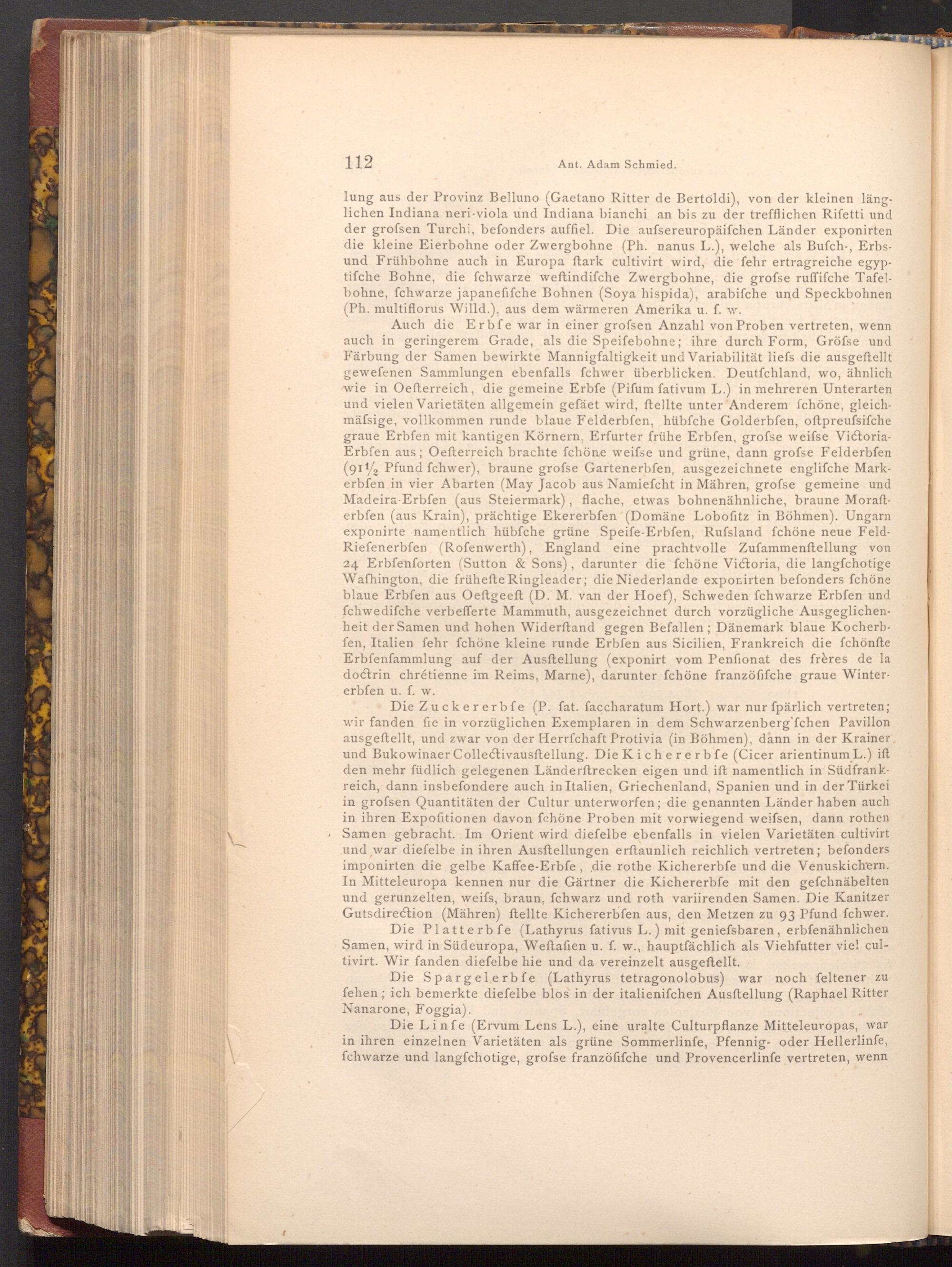 lung aus der Provinz Belluno( Gaetano Ritter de Bertoldi), von der kleinen läng. lichen Indiana neri- viola und Indiana bianchi an bis zu der trefflichen Rifetti und der grofsen Turchi, befonders auffiel. Die aufsereuropäiſchen Länder exponirten die kleine Eierbohne oder Zwergbohne( Ph. nanus L.), welche als Bufch-, Erbsund Frühbohne auch in Europa ftark cultivirt wird, die fehr ertragreiche egyptifche Bohne, die fchwarze weftindifche Zwergbohne, die grofse ruffifche Tafelbohne, fchwarze japanefifche Bohnen( Soya hispida), arabifche und Speckbohnen ( Ph. multiflorus Willd.), aus dem wärmeren Amerika u. f. w.