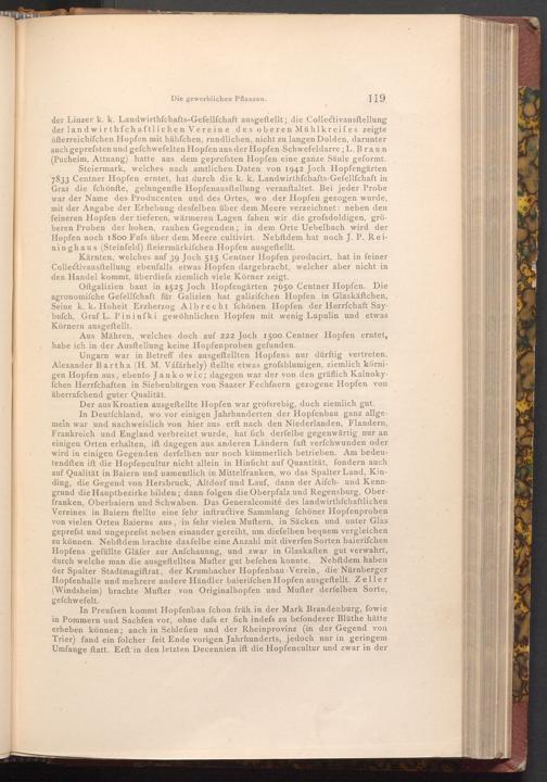 Aus Mähren, welches doch auf 222 Joch 1500 Centner Hopfen erntet, habe ich in der Ausftellung keine Hopfenproben gefunden.