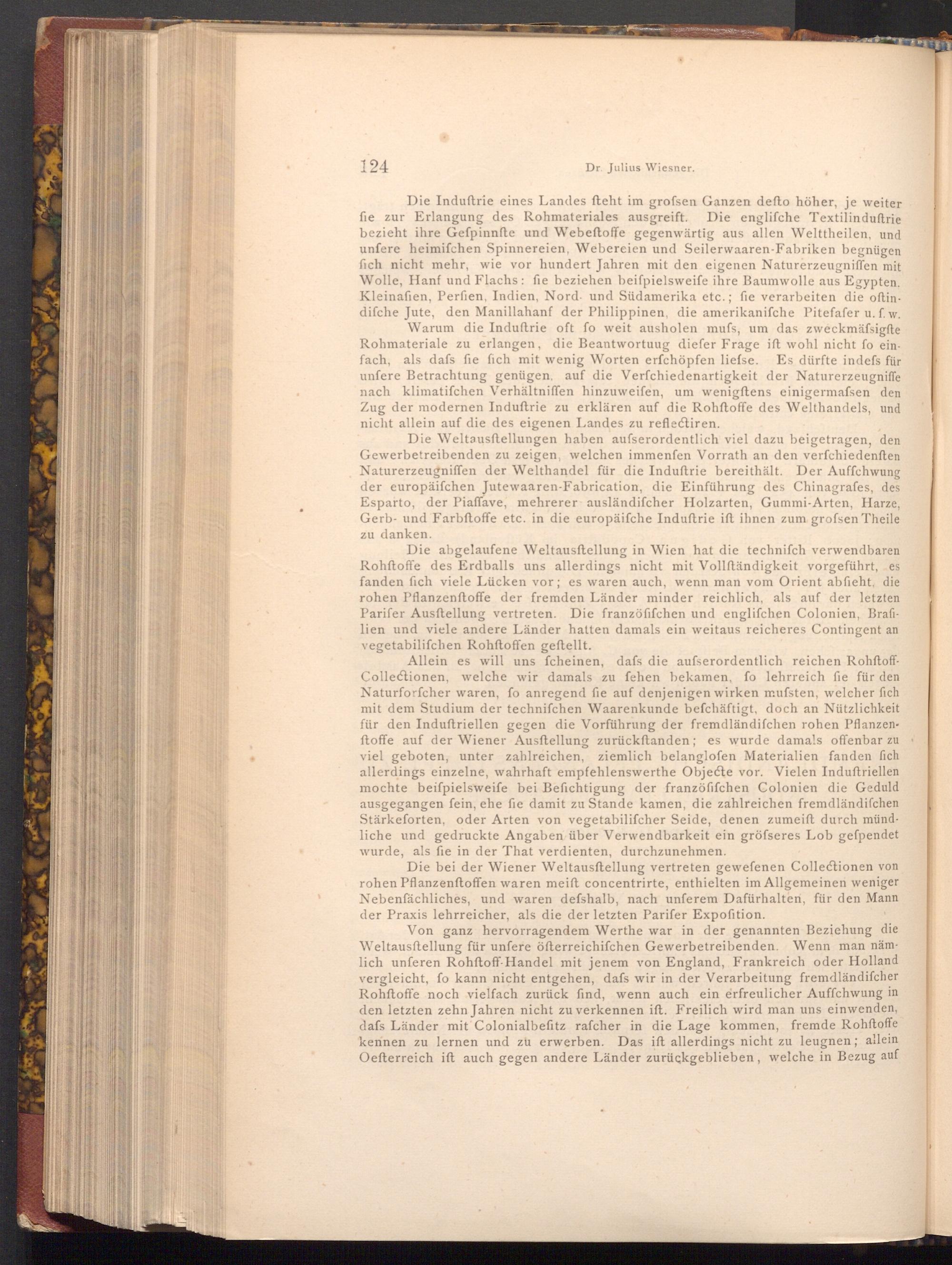 Die Weltausftellungen haben aufserordentlich viel dazu beigetragen, den Gewerbetreibenden zu zeigen, welchen immenfen Vorrath an den verfchiedenften Naturerzeugniffen der Welthandel für die Induſtrie bereithält. Der Auffchwung der europäiſchen Jutewaaren- Fabrication, die Einführung des Chinagrafes, des Esparto, der Piaffave, mehrerer ausländifcher Holzarten, Gummi- Arten, Harze, Gerb- und Farbftoffe etc. in die europäiſche Induftrie ift ihnen zum grofsen Theile zu danken.