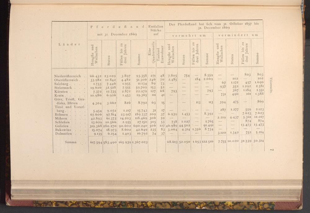 Der Pferdeftand hat fich vom 31. October 1857 bis 31. December 1869