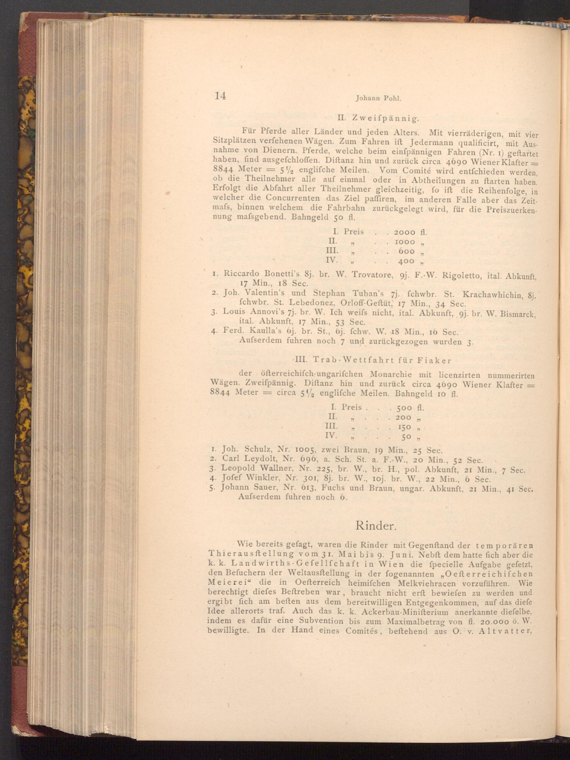 5. Johann Sauer, Nr. 613, Fuchs und Braun, ungar. Abkunft, 21 Min., 41 Sec. Aufserdem fuhren noch 6.