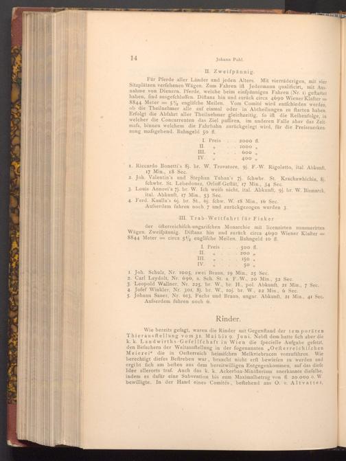 1. Joh. Schulz, Nr. 1005, zwei Braun, 19 Min., 25 Sec.