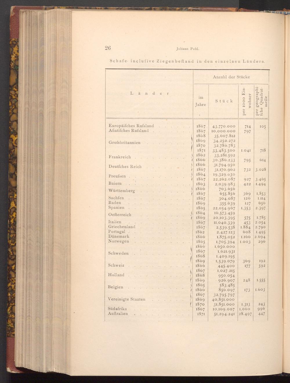 Schafe inclufive Ziegen beftand in den einzelnen Ländern.