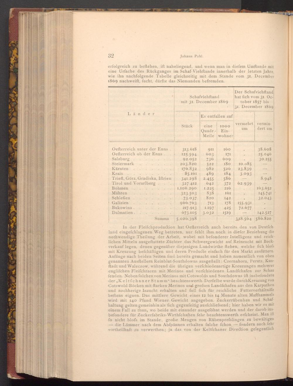 Der Schafviehftand hat fich vom 31. October 1857 bis 31. December 1869