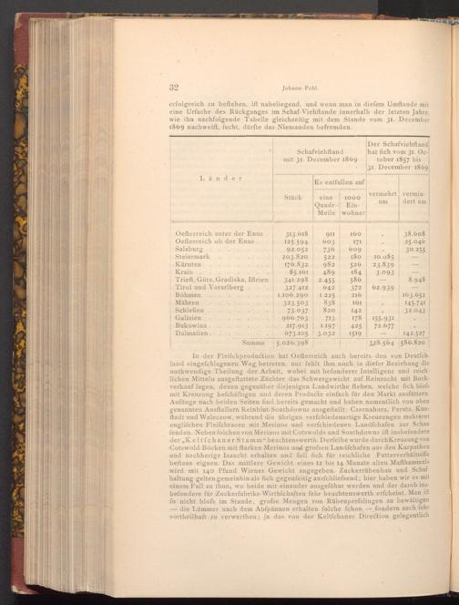 erfolgreich zu beftehen, ift naheliegend, und wenn man in diefem Umftande mit eine Urfache des Rückganges im Schaf- Viehftande innerhalb der letzten Jahre, wie ihn nachfolgende Tabelle gleichzeitig mit dem Stande vom 31. December 1869 nachweift, fucht, dürfte das Niemanden befremden.