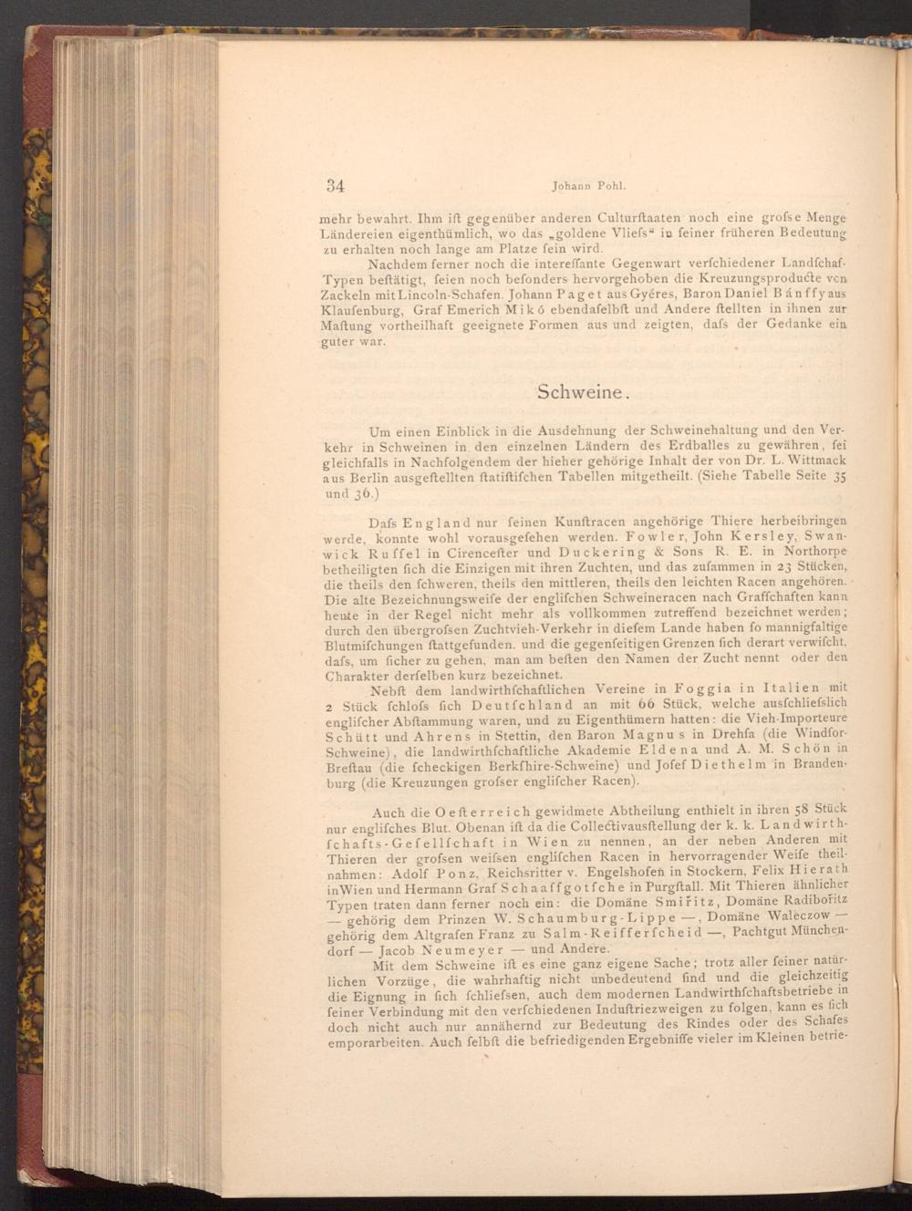 Nebft dem landwirthschaftlichen Vereine in Foggia in Italien mit 2 Stück fchlofs fich Deutfchland an mit 66 Stück, welche ausfchliesslich englifcher Abftammung waren, und zu Eigenthümern hatten: die Vieh- Importeure Schütt und Ahrens in Stettin, den Baron Magnus in Drehfa( die WindforSchweine), die landwirthfchaftliche Akademie Eldena und A. M. Schön in Breftau( die fcheckigen Berkfhire- Schweine) und Jofef Diethelm in Brandenburg( die Kreuzungen grofser englifcher Racen).
