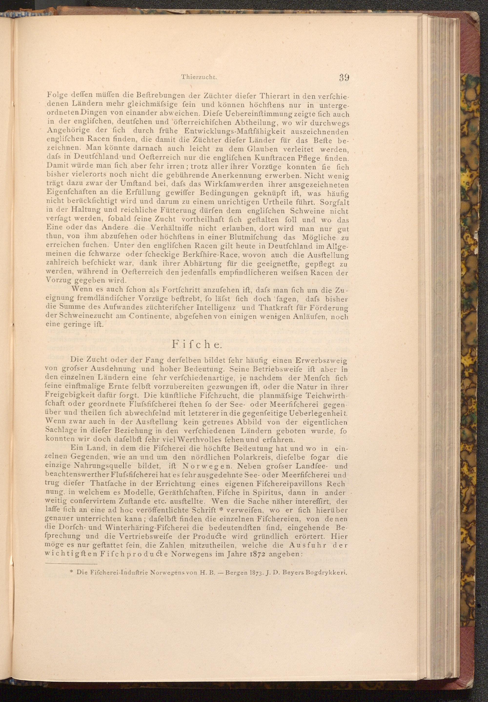 * Die Fifcherei- Induftrie Norwegens von H. B.-- Bergen 1873. J. D. Beyers Bogdrykkeri.