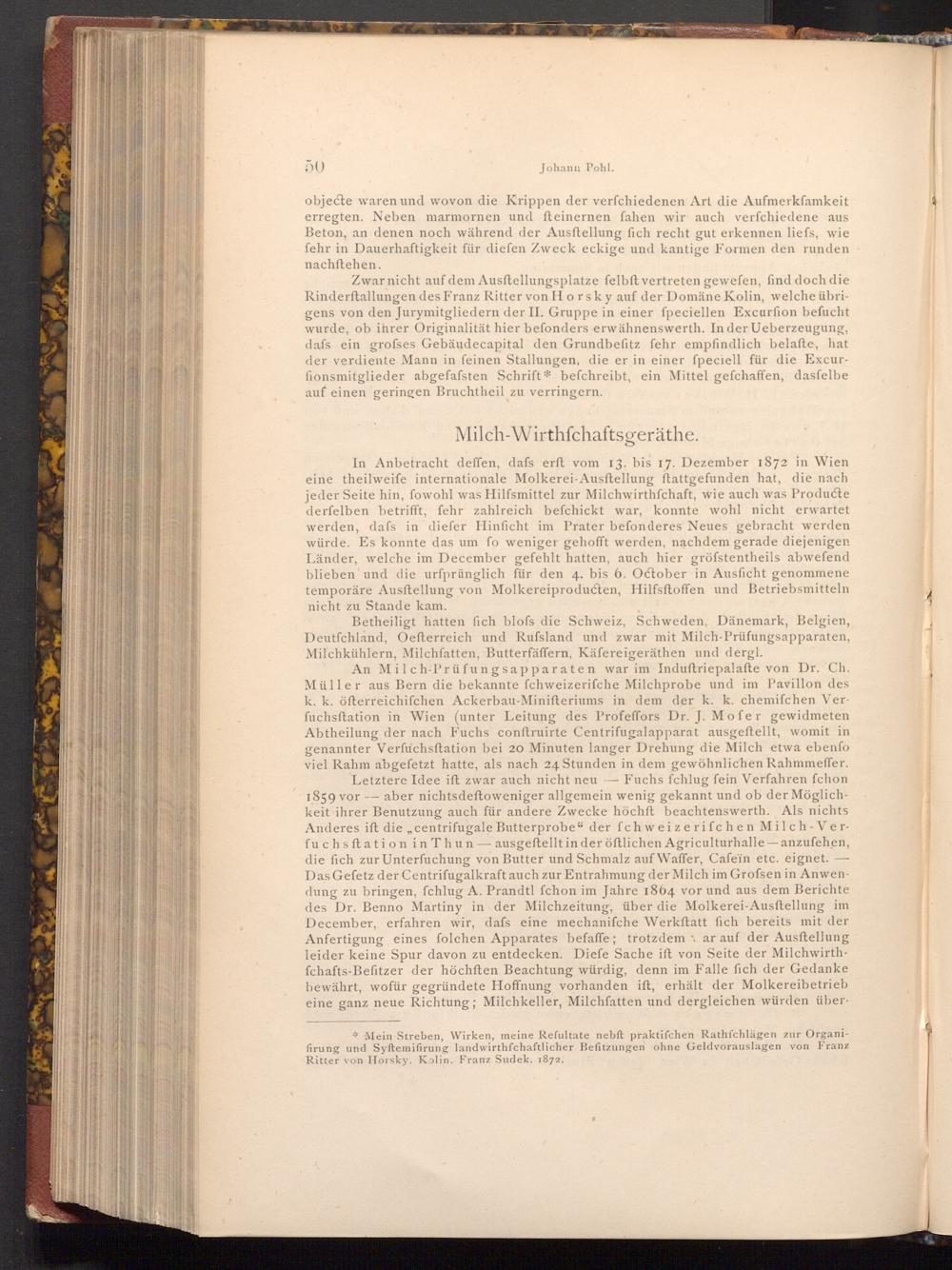 * Mein Streben, Wirken, meine Refultate nebft praktifchen Rathfchlägen zur Organifirung und Syftemifirung landwirthschaftlicher Befitzungen ohne Geldvorauslagen von Franz Ritter von Horsky. Kolin. Franz Sudek. 1872.