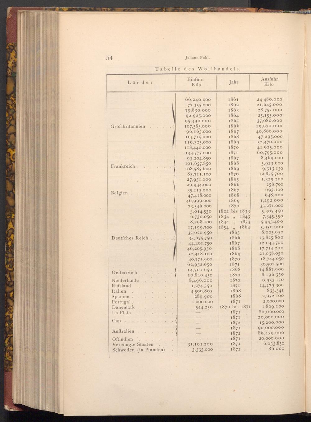 Tabelle des Wollhandels.