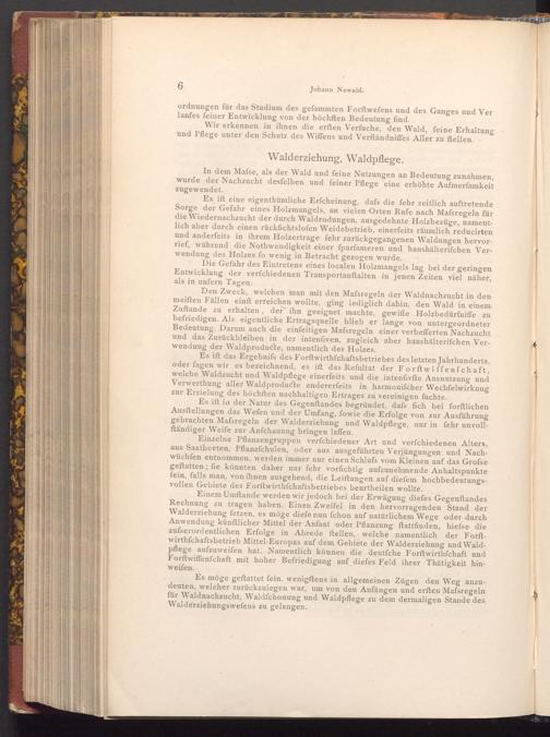 Wir erkennen in ihnen die erften Verfuche, den Wald, feine Erhaltung und Pflege unter den Schutz des Wiffens und Verftändniffes Aller zu ftellen.