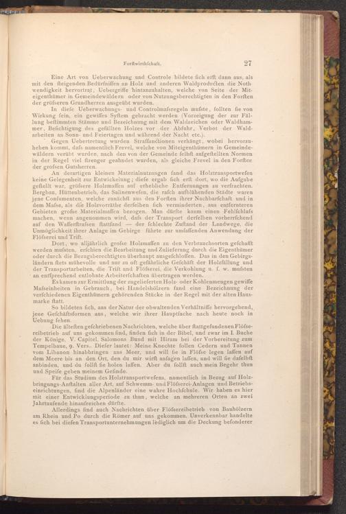 Für das Studium des Holztransportwefens, namentlich in Bezug auf Holzbringungs- Anftalten aller Art, auf Schwemm- und Flöfserei- Anlagen und Betriebseinrichtungen, find die Alpenländer eine wahre Hochfchule. Wir haben es hier mit einer Entwicklungsperiode zu thun, welche an mehreren Orten an zwei Jahrtaufende hinaufreichen dürfte.