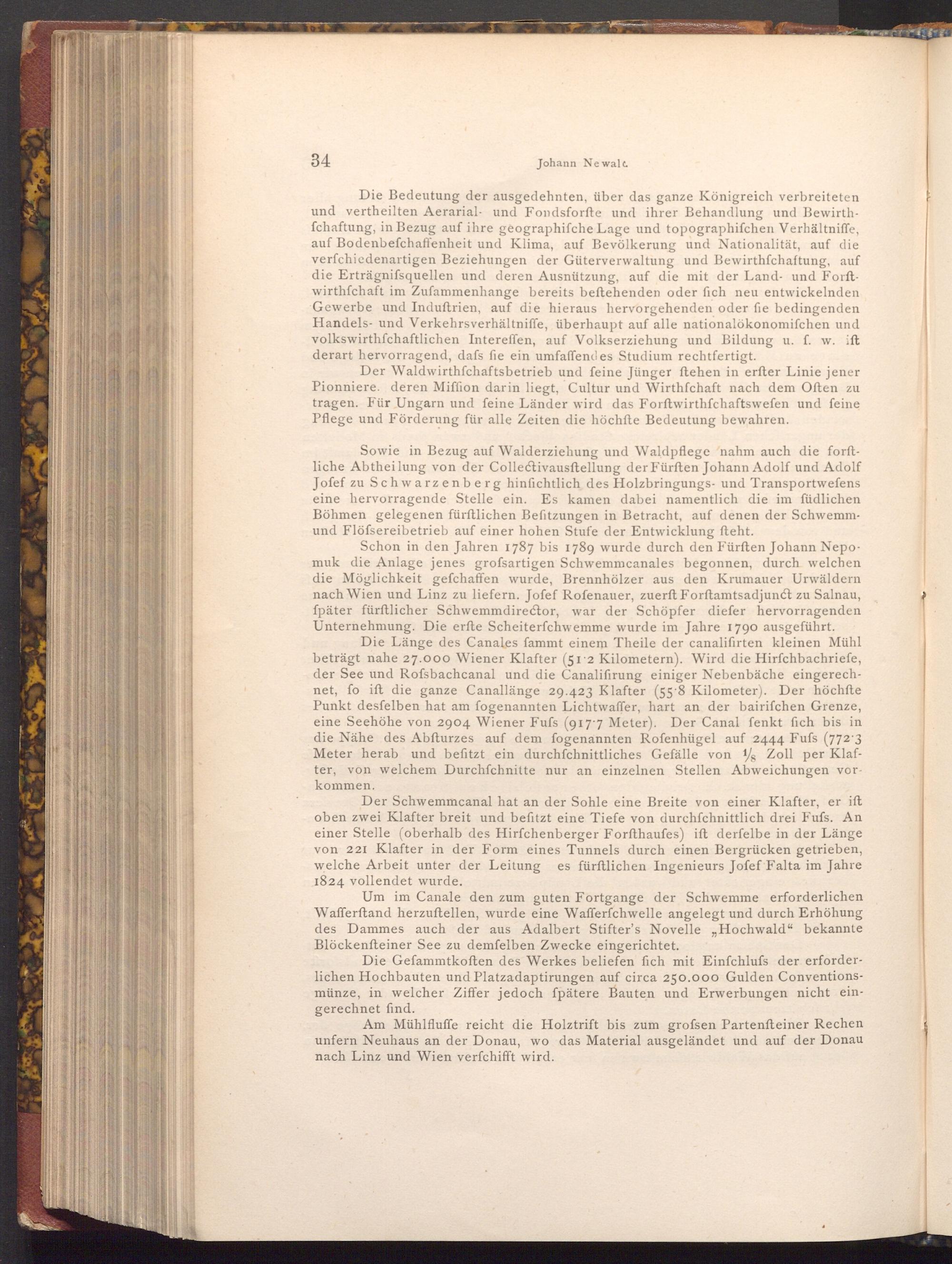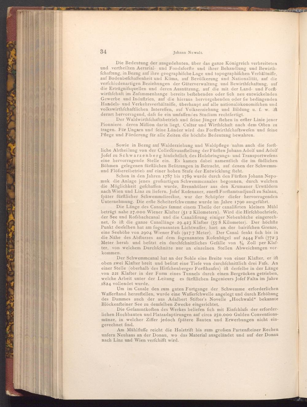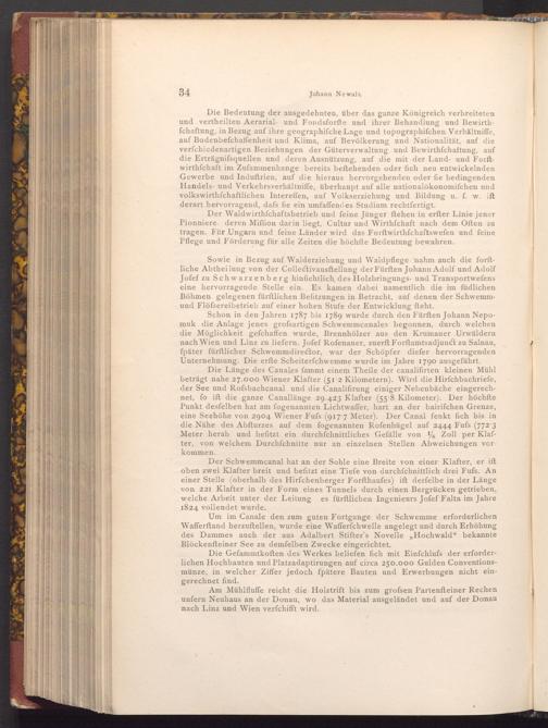 Schon in den Jahren 1787 bis 1789 wurde durch den Fürften Johann Nepomuk die Anlage jenes grofsartigen Schwemmcanales begonnen, durch welchen die Möglichkeit gefchaffen wurde, Brennhölzer aus den Krumauer Urwäldern nach Wien und Linz zu liefern. Jofef Rofenauer, zuerft Forftamtsadjunct zu Salnau, fpäter fürftlicher Schwemmdirector, war der Schöpfer diefer hervorragenden Unternehmung. Die erfte Scheiterfchwemme wurde im Jahre 1790 ausgeführt.