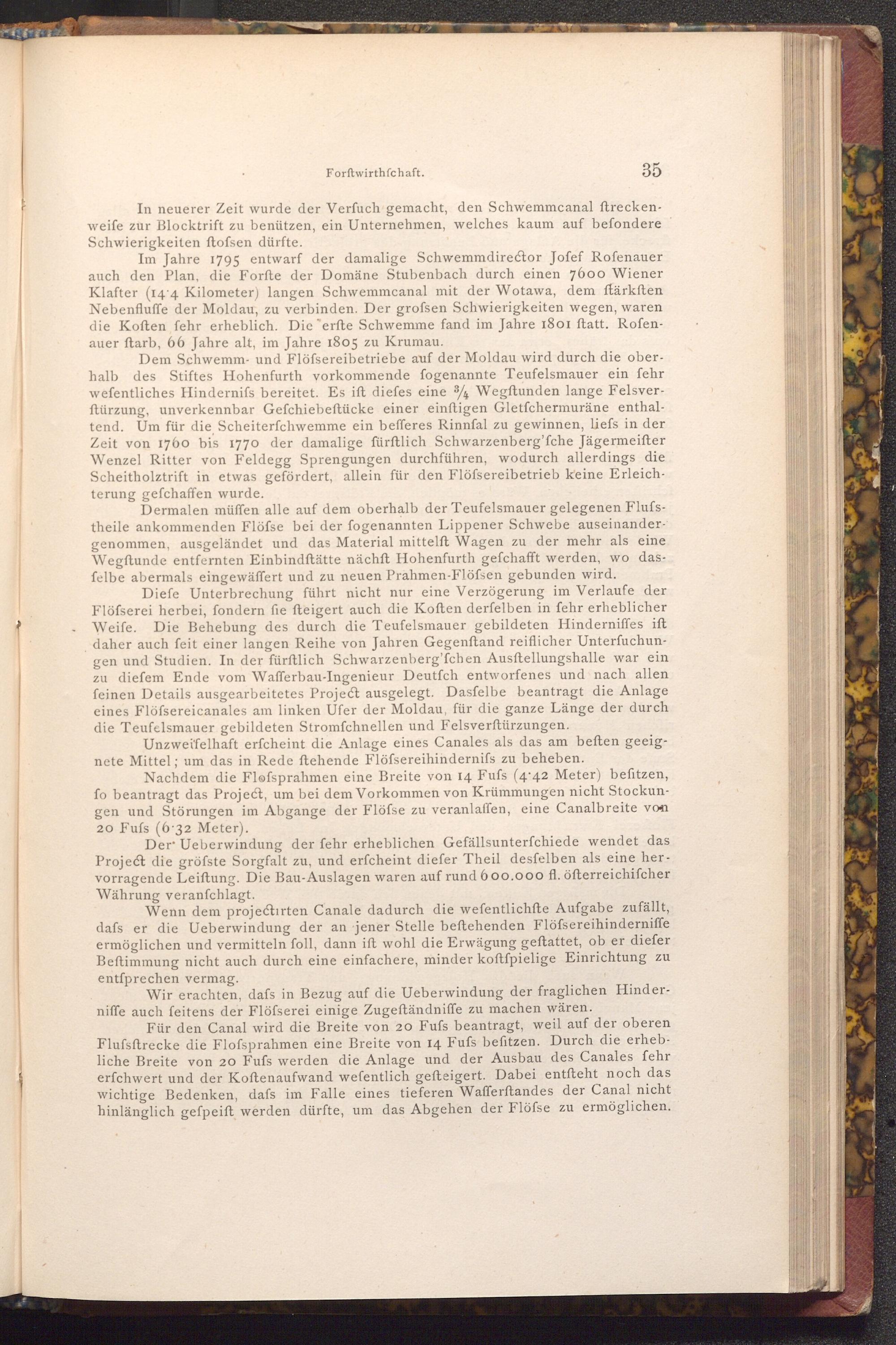 Im Jahre 1795 entwarf der damalige Schwemmdirector Jofef Rofenauer auch den Plan, die Forfte der Domäne Stubenbach durch einen 7600 Wiener Klafter( 14'4 Kilometer) langen Schwemmcanal mit der Wotawa, dem ftärksten Nebenfluffe der Moldau, zu verbinden. Der grofsen Schwierigkeiten wegen, waren die Koften fehr erheblich. Die erfte Schwemme fand im Jahre 1801 ftatt. Rofenauer ftarb, 66 Jahre alt, im Jahre 1805 zu Krumau.
