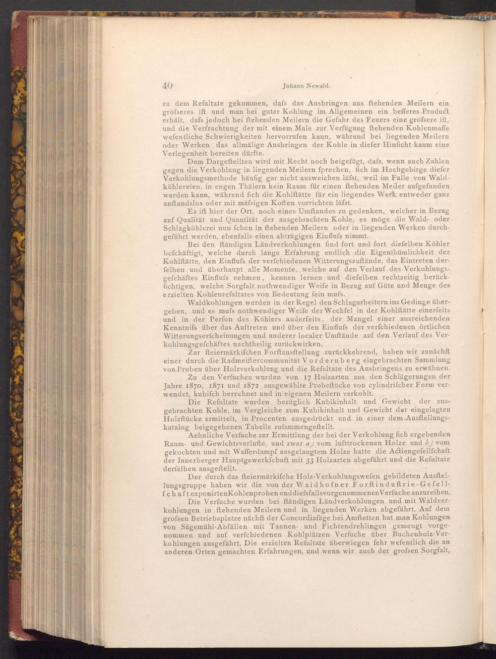 Aehnliche Verfuche zur Ermittlung der bei der Verkohlung fich ergebenden Raum- und Gewichtsverlufte, und zwar a) vom lufttrockenen Holze und b) vom gekochten und mit Wafferdampf ausgelaugtem Holze hatte die Actiengeſellſchaft der Innerberger Hauptgewerkschaft mit 33 Holzarten abgeführt und die Refultate derfelben ausgeftellt.