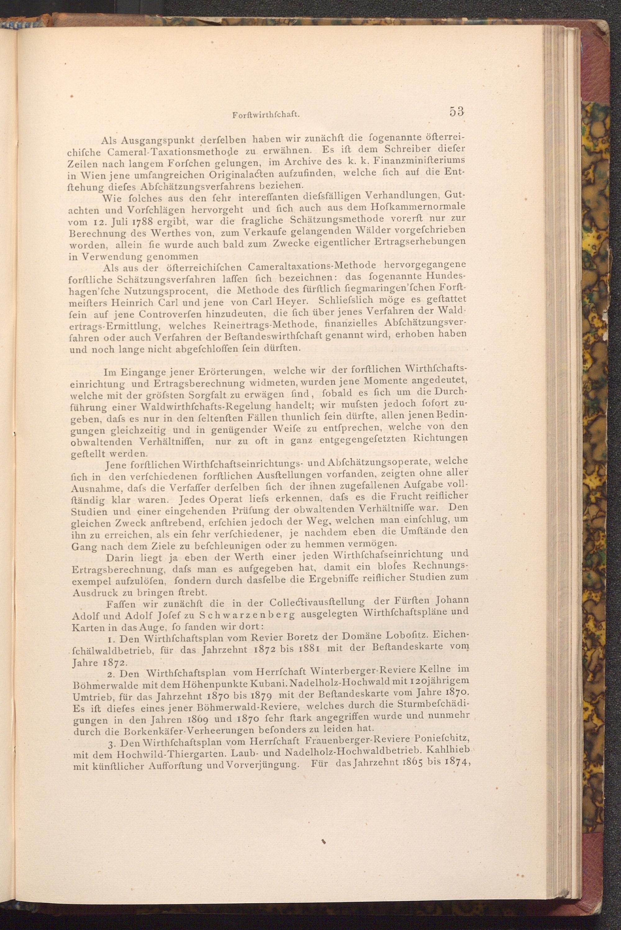 Faffen wir zunächft die in der Collectivausftellung der Fürften Johann Adolf und Adolf Jofef zu Schwarzenberg ausgelegten Wirthfchaftspläne und Karten in das Auge, fo fanden wir dort: