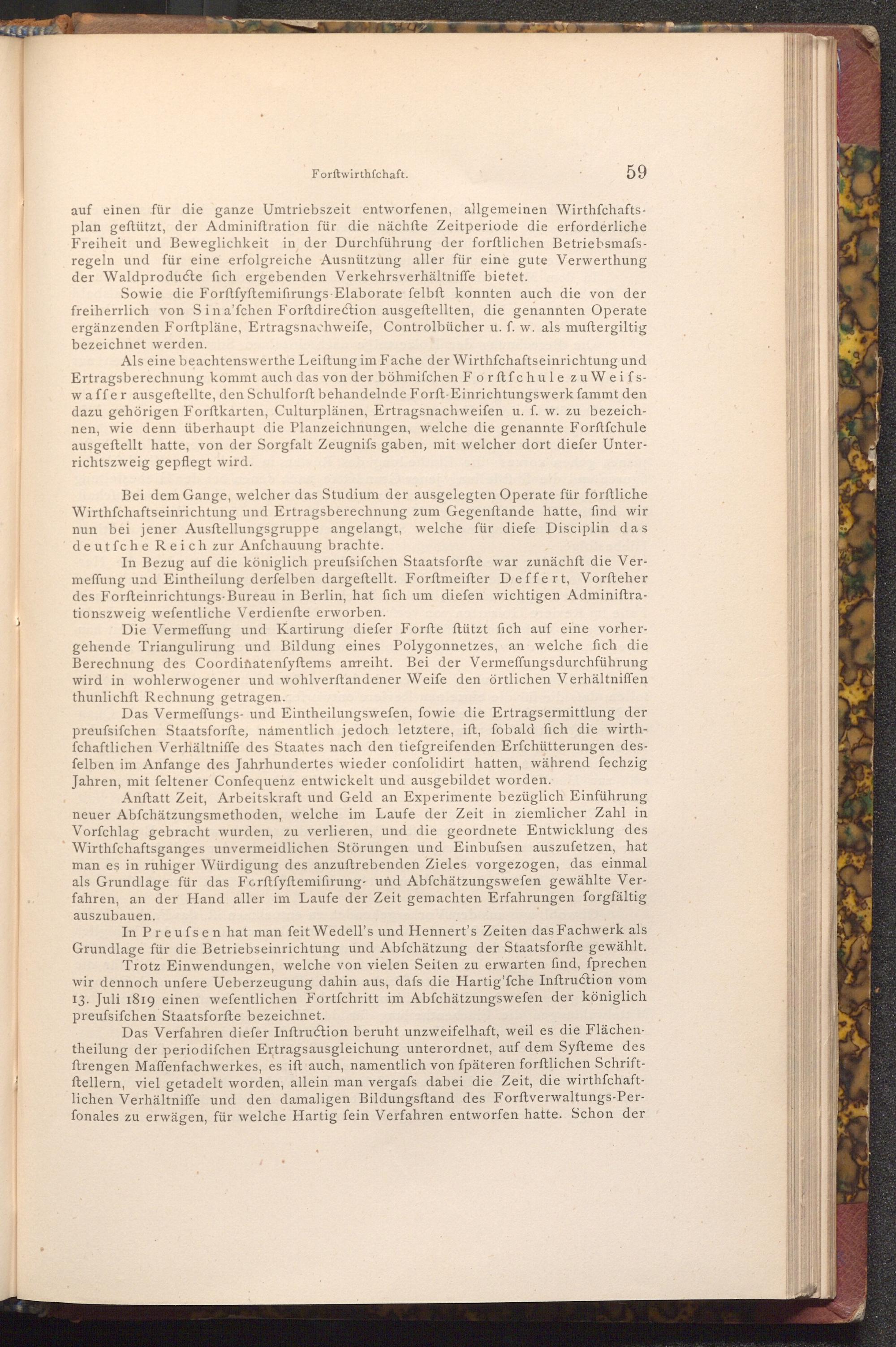 In Bezug auf die königlich preufsifchen Staatsforfte war zunächft die Vermeffung und Eintheilung derfelben dargestellt. Forftmeifter Deffert, Vorfteher des Forfteinrichtungs- Bureau in Berlin, hat fich um diefen wichtigen Adminiftrationszweig wefentliche Verdienfte erworben.
