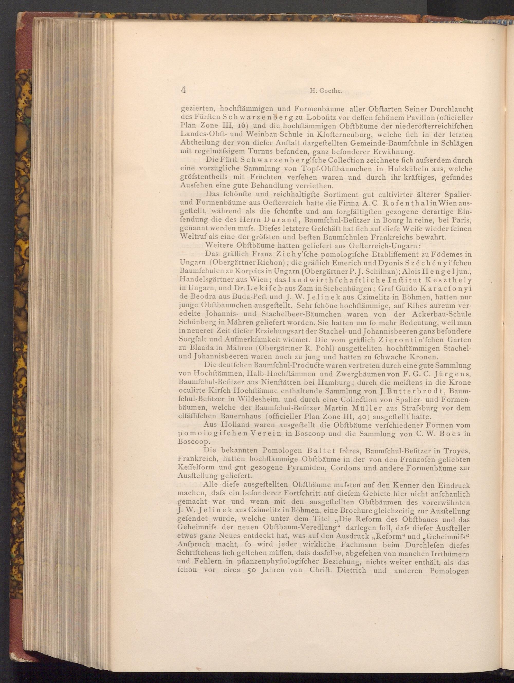 gezierten, hochftämmigen und Formenbäume aller Obftarten Seiner Durchlaucht des Fürften Schwarzenberg zu Lobofitz vor deffen fchönem Pavillon( officieller Plan Zone III, 16) und die hochftämmigen Obftbäume der niederöfterreichifchen Landes- Obft- und Weinbau- Schule in Klofterneuburg, welche fich in der letzten Abtheilung der von diefer Anftalt dargestellten Gemeinde- Baumfchule in Schlägen mit regelmässigem Turnus befanden, ganz befonderer Erwähnung.