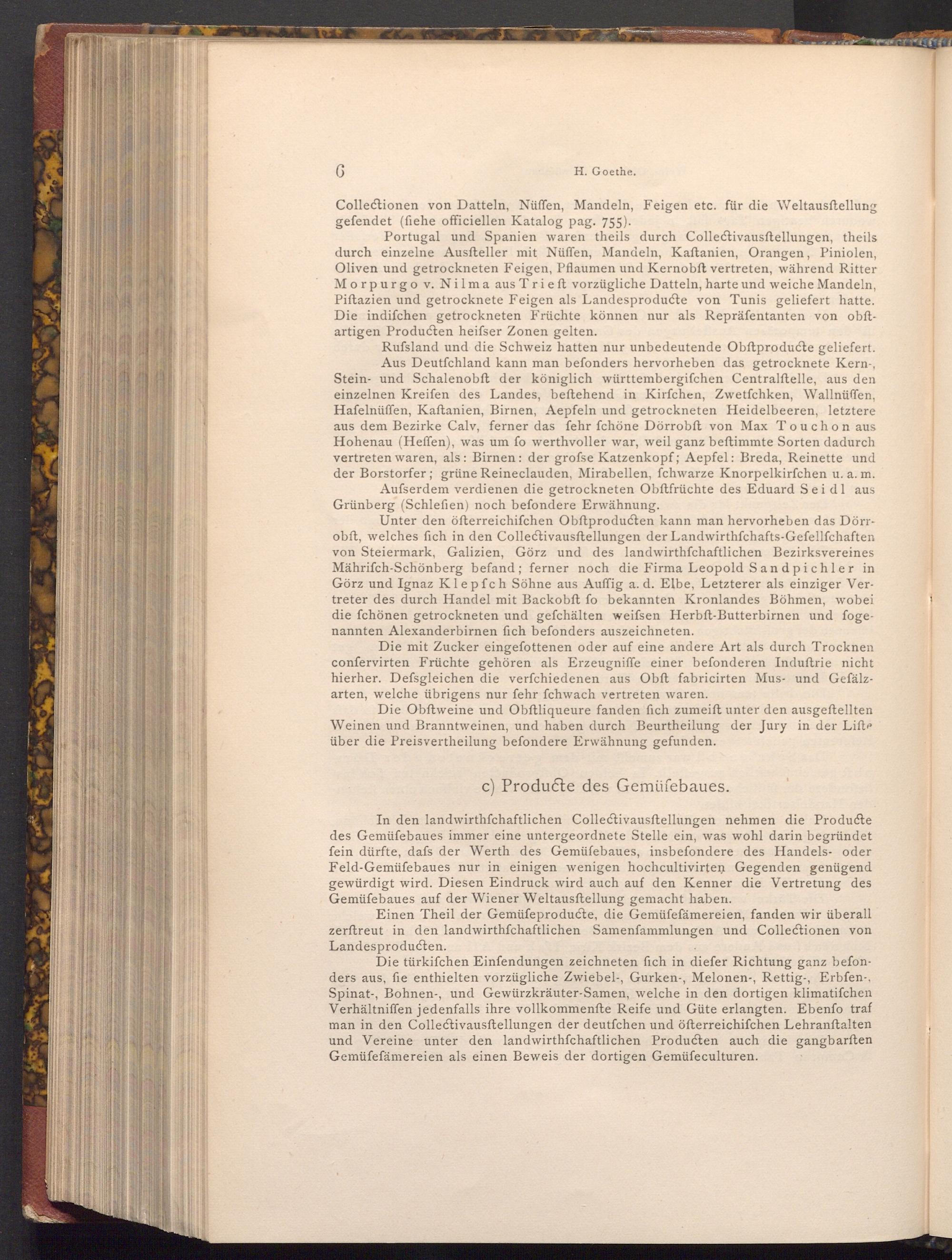 Unter den öfterreichiſchen Obftproducten kann man hervorheben das Dörrobft, welches fich in den Collectivausftellungen der Landwirthschafts- Gefellſchaften von Steiermark, Galizien, Görz und des landwirthfchaftlichen Bezirksvereines Mährifch- Schönberg befand; ferner noch die Firma Leopold Sandpichler in Görz und Ignaz Klepfch Söhne aus Auffig a. d. Elbe, Letzterer als einziger Vertreter des durch Handel mit Backobft fo bekannten Kronlandes Böhmen, wobei die fchönen getrockneten und gefchälten weifsen Herbft- Butterbirnen und fogenannten Alexanderbirnen fich befonders auszeichneten.