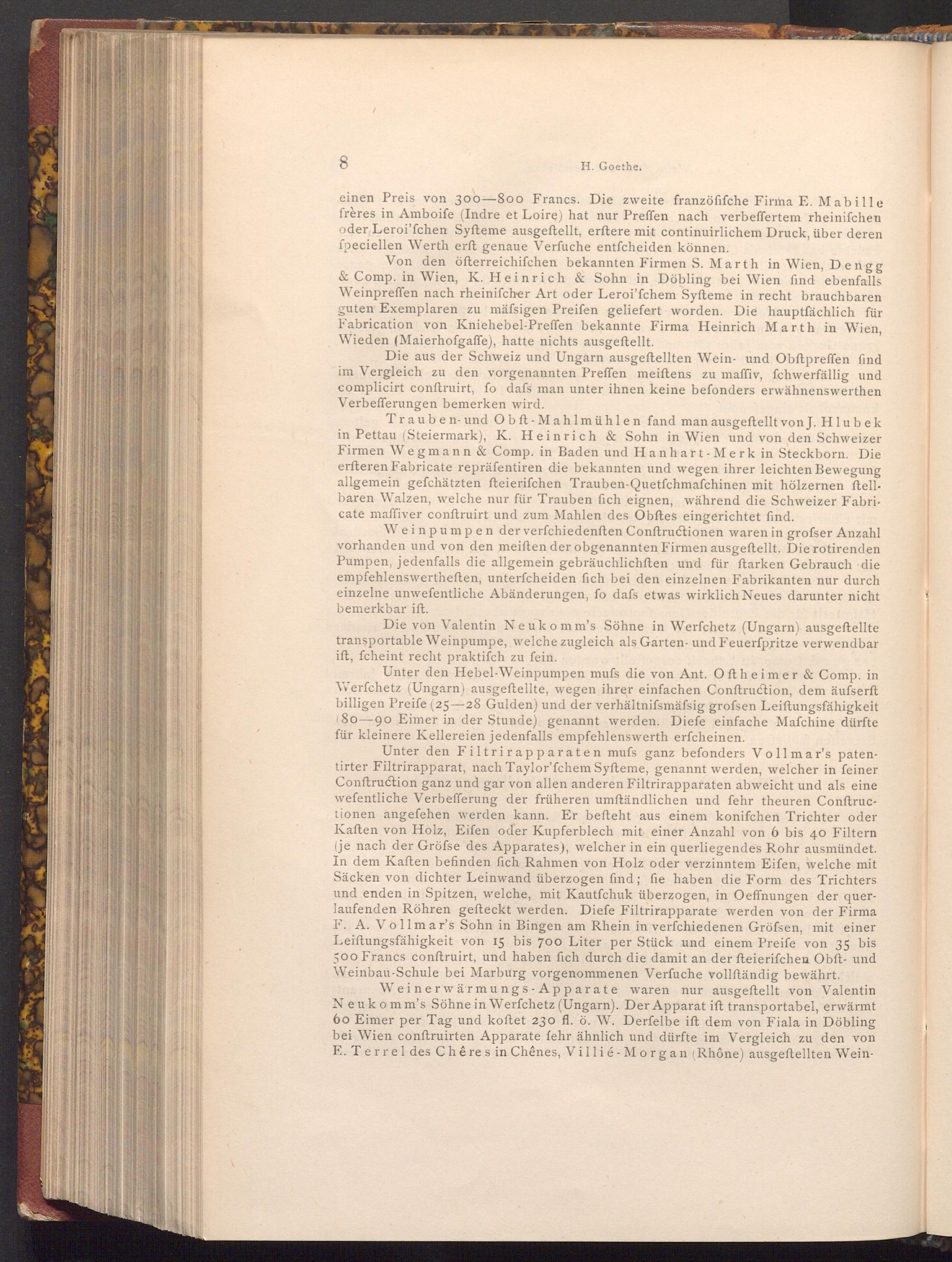 Von den öfterreichifchen bekannten Firmen S. Marth in Wien, Dengg & Comp. in Wien, K. Heinrich& Sohn in Döbling bei Wien find ebenfalls Weinpreffen nach rheinifcher Art oder Leroi'fchem Syfteme in recht brauchbaren guten Exemplaren zu mäfsigen Preifen geliefert worden. Die hauptfächlich für Fabrication von Kniehebel- Preffen bekannte Firma Heinrich Marth in Wien, Wieden( Maierhofgaffe), hatte nichts ausgeftellt.