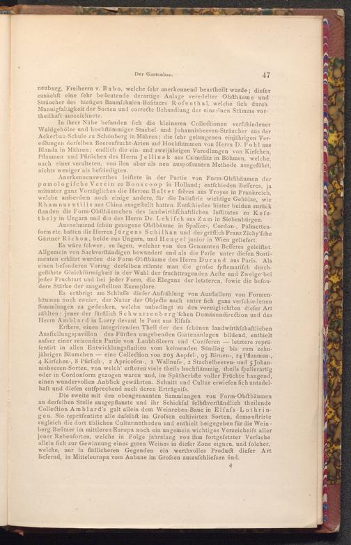 Es erübrigt am Schluffe diefer Aufzählung von Ausftellern von Formenbäumen noch zweier, der Natur der Objecte nach unter fich ganz verfchiedenen Sammlungen zu gedenken, welche unbedingt zu den vorzüglichften diefer Art zählten jener der fürftlich Schwarzenberg' fchen Domänendirection und des Herrn Amblard in Lorry devant le Pont aus Elfafs.