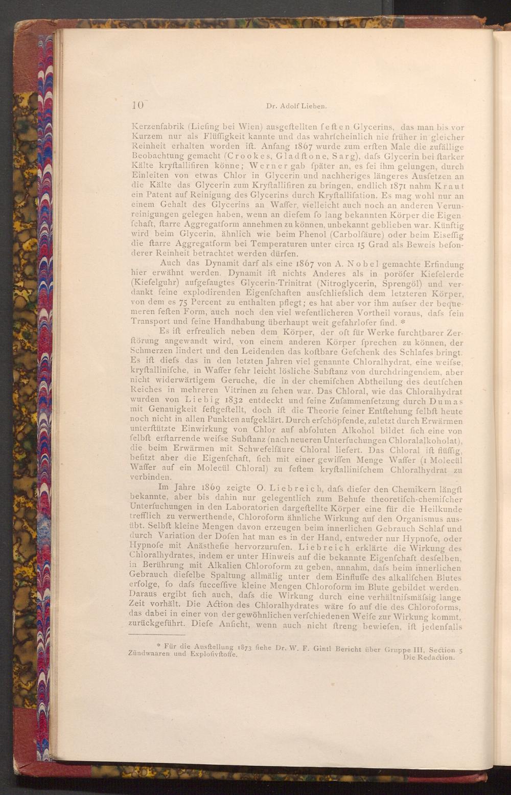 * Für die Ausftellung 1873 fiehe Dr. W. F. Gintl Bericht über Gruppe III, Section 5 Zündwaaren und Explofivftoffe. Die Redaction.