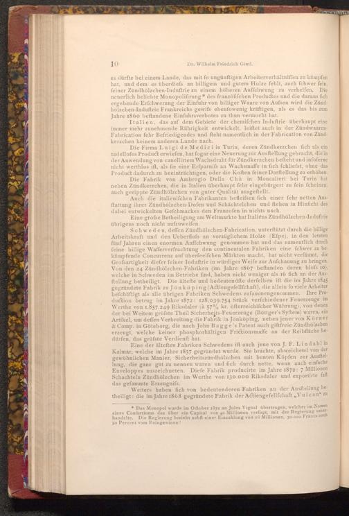 Italien, das auf dem Gebiete der chemifchen Induftrie überhaupt eine immer mehr zunehmende Rührigkeit entwickelt, leiftet auch in der ZündwaarenFabrication fehr Befriedigendes und fteht namentlich in der Fabrication von Zündkerzchen keinem anderen Lande nach.