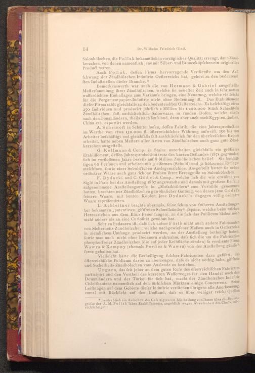 Auch Pollak, deffen Firma hervorragende Verdienfte um den Auffchwung der Zündhölzchen- Induftrie Oefterreichs hat, gehört zu den bedeutend ften Induftriellen diefer Branche.*