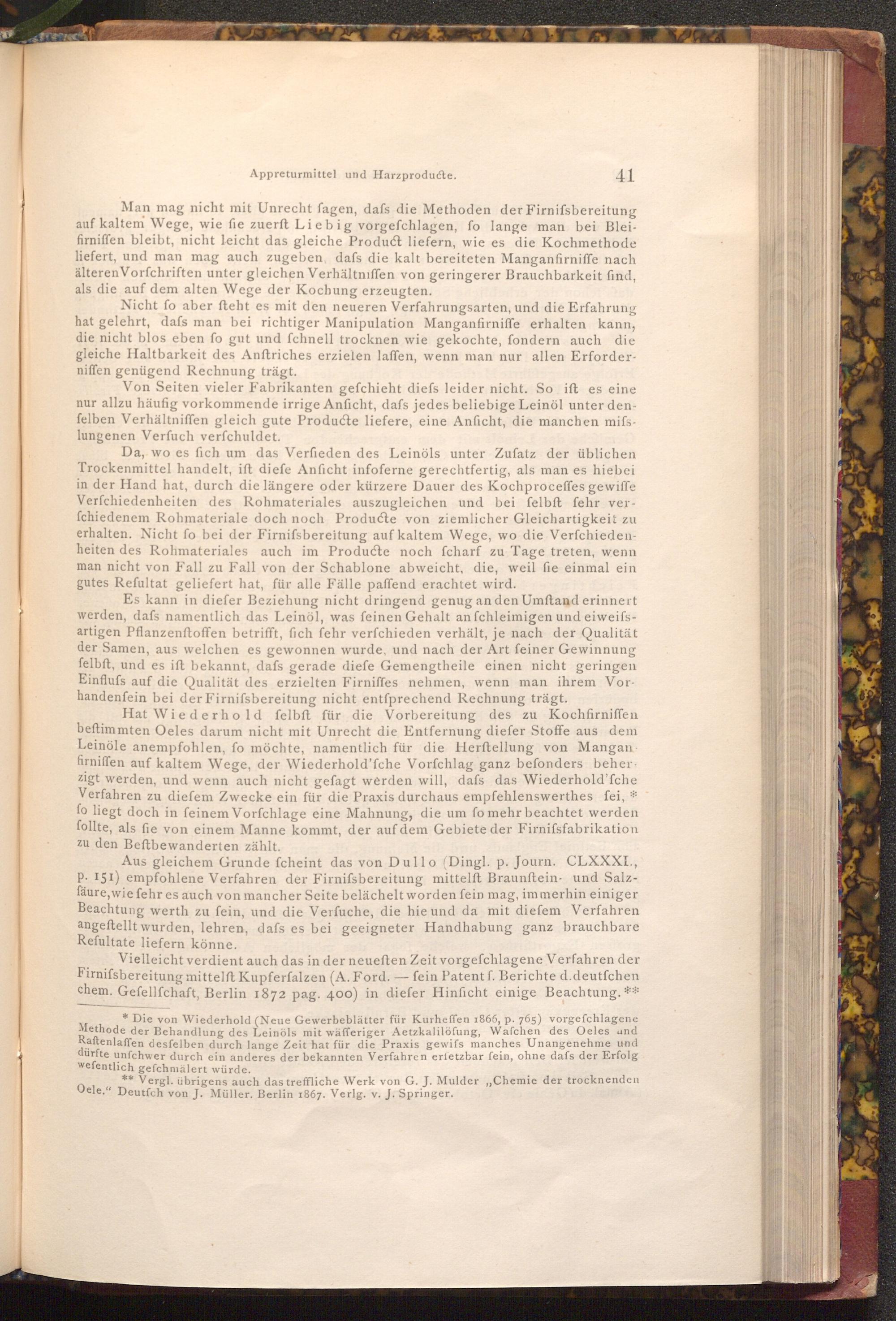 ** Vergl. übrigens auch das treffliche Werk von G. J. Mulder ,, Chemie der trocknenden Oele." Deutfch von J. Müller. Berlin 1867. Verlg. v. J. Springer.