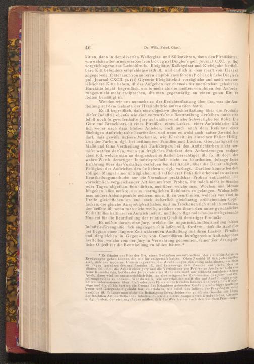 Es müsste darum eine Jury, welche die unparteiifche Beurtheilung folcher Induftrie- Erzeugniffe fich angelegen fein laffen will, fordern, dafs die Ausfteller bei Beginn einer längere Zeit währenden Ausftellung mit ihren Lacken, Firniffen und dergleichen in Gegenwart von Commiffären kunftgerechte Anftrichproben herftellen, welche von der Jury in Verwahrung genommen, feiner Zeit das eigentliche Object für die Beurtheilung zu bilden hätten.*