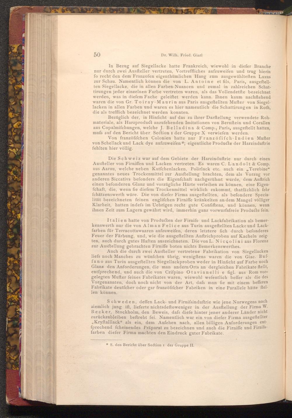 Bezüglich der, in Hinficht auf das zu ihrer Darftellung verwendete Rohmateriale, als Harzproduct anzufehenden Imitationen von Bernftein und Corallen aus Copalmifchungen, welche J. Belladina& Comp., Paris, ausgeftellt hatten, mufs auf den Bericht über Section I der Gruppe X verwiefen werden.