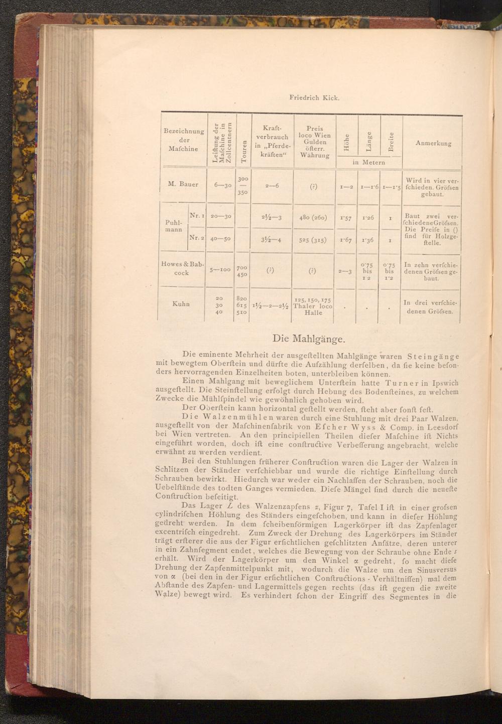 Die eminente Mehrheit der ausgeftellten Mahlgänge waren Steingänge mit bewegtem Oberftein und dürfte die Aufzählung derfelben, da fie keine befonders hervorragenden Einzelheiten boten, unterbleiben können.