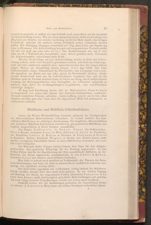 Die, Belgier Daffonville, St. Hubert, Namur, die Oefterreicher, Ofer in Krems, Gebrüder Israel in Wien, Hübner& Opitz in Pardubitz; die Deutfchen Lüders& Kubon in Dresden, A. Fauqueux& Behrlé in Renchen, Baden; Friedrich Wegner in Stettin und Andere hatten mehr minder vorzügliche franzöfifche Steine zu ihren Mühlfteinen verwendet, und auch fehr folid verbunden.