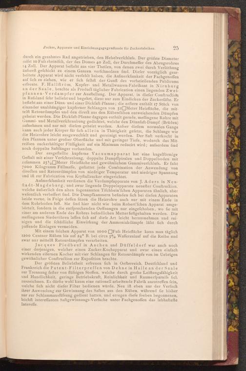Zucker, Apparate und Einrichtungsgegenstände für Zuckerfabriken.