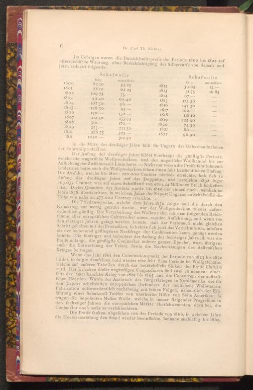 Die Friedensepoche, welche dem Jahre 1850 folgte und die durch den Krimkrieg nur wenig getrübt wurde, war der Wollproduction wieder aufser ordentlich günftig. Die Verarbeitung der Wollen nahm mit dem fteigenden Reichthume aller europäiſchen Culturvölker einen rapiden Auffchwung, und wenn von den vierziger Jahren gefagt werden konnte, dafs der Verbrauch nicht gleichen Schritt gehalten mit der Production, fo kehrte fich jetzt das Verhältnifs um, infofern als der bedeutend geftiegenen Nachfrage der Confumenten kaum genügt werden konnte. Die fünfziger und befonders der Anfang der fechsziger Jahre ift, was die Preife anlangt, die günftigfte Conjunctur unferer ganzen Epoche, wozu übrigens auch die Entwerthung der Valuta, fowie die Nachwirkungen des italienifchen Krieges beitrugen.