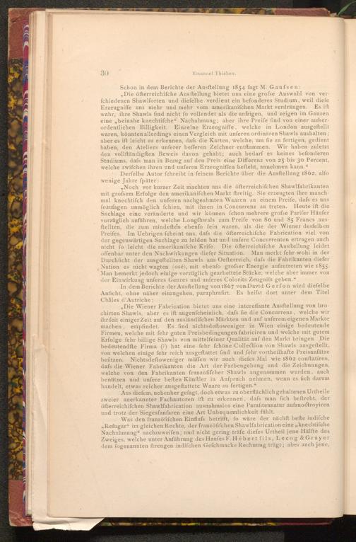 Aus diefem, nebenher gefagt, doch etwas zu oberflächlich gehaltenen Urtheile zweier anerkannter Fachautoren ift zu erkennen, dafs man fich beftrebt, der öfterreichifchen Shawlfabrication ausnahmslos eine Parafitennatur aufzuoctroyiren und trotz der Siegesfanfaren eine Art Unbequemlichkeit fühlt.