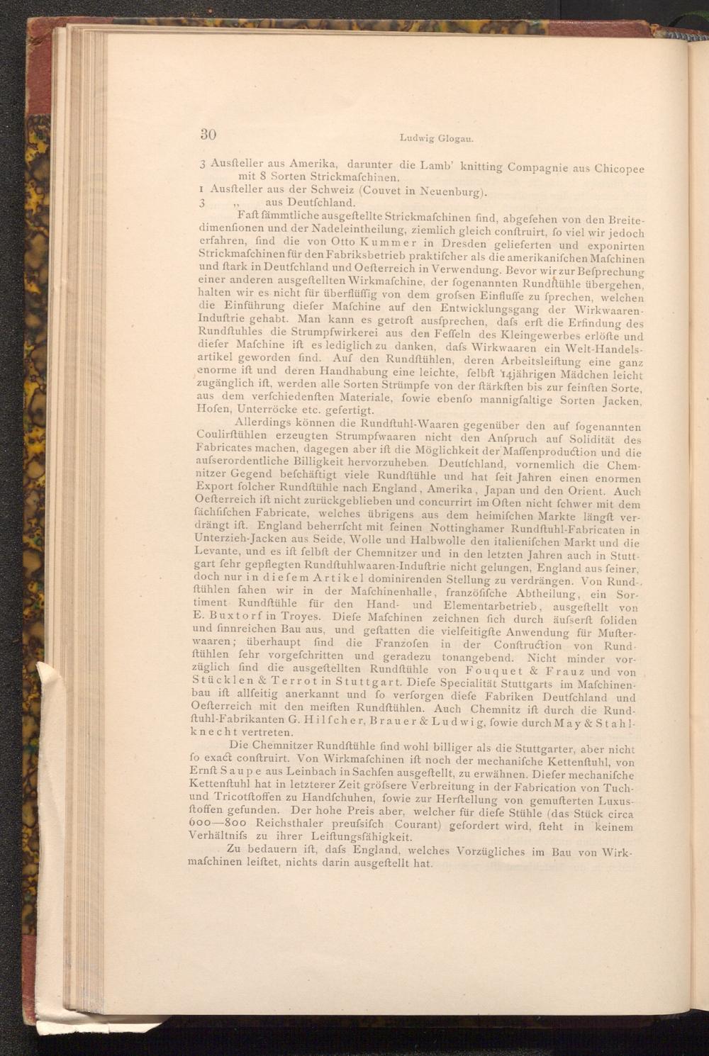 3 Aussteller aus Amerika, darunter die Lamb' knitting Compagnie aus Chicopee mit 8 Sorten Strickmafchinen.