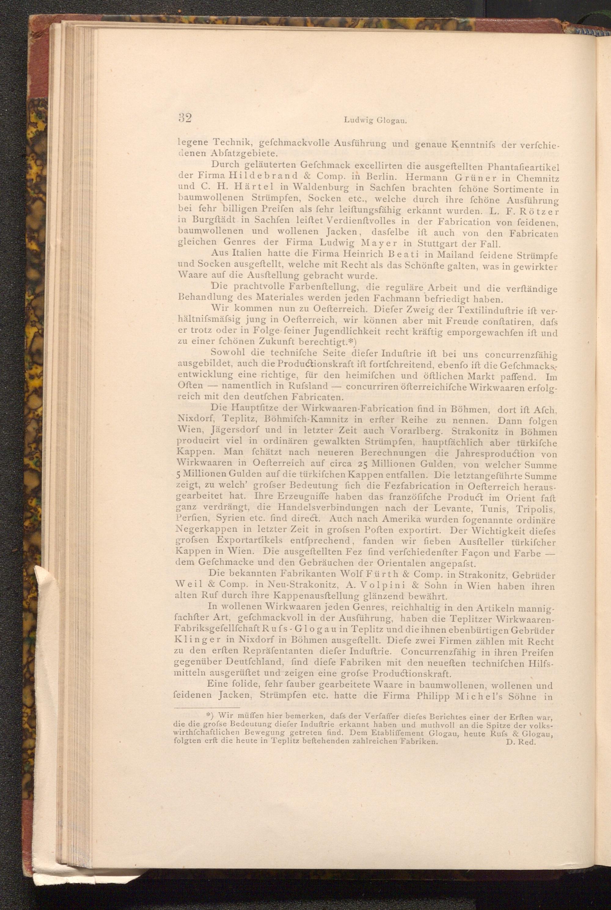 Wir kommen nun zu Oefterreich. Diefer Zweig der Textilinduftrie ift verhältnifsmässig jung in Oefterreich, wir können aber mit Freude conftatiren, dafs er trotz oder in Folge feiner Jugendlichkeit recht kräftig emporgewachfen ift und zu einer fchönen Zukunft berechtigt.*)