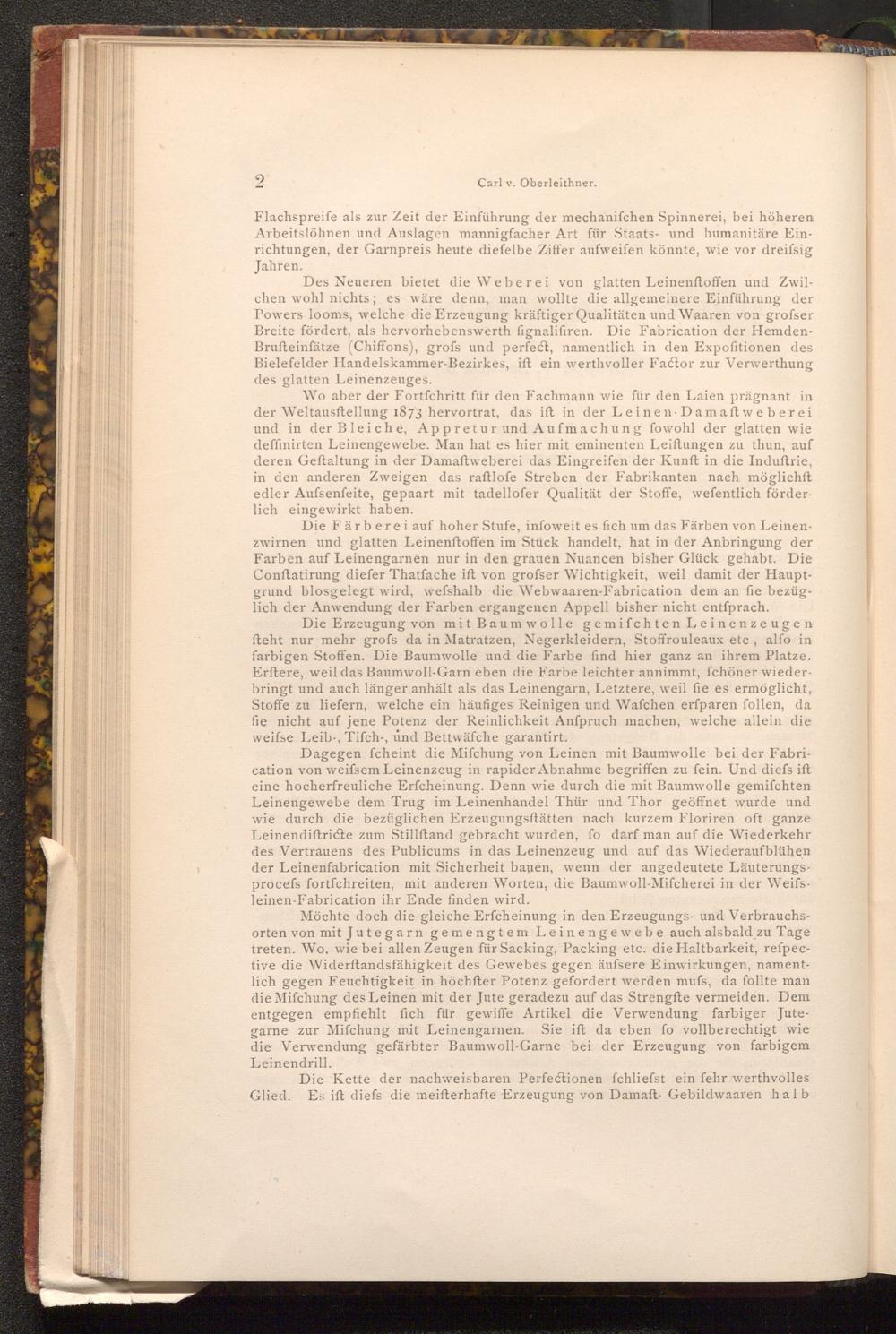 Wo aber der Fortfchritt für den Fachmann wie für den Laien prägnant in der Weltausftellung 1873 hervortrat, das ift in der Leinen Damaft weberei und in der Bleiche, Appretur und Aufmachung fowohl der glatten wie deffinirten Leinengewebe. Man hat es hier mit eminenten Leiftungen zu thun, auf deren Geftaltung in der Damaftweberei das Eingreifen der Kunft in die Induftrie, in den anderen Zweigen das raftlofe Streben der Fabrikanten nach möglichft edler Aufsenfeite, gepaart mit tadellofer Qualität der Stoffe, wefentlich förderlich eingewirkt haben.