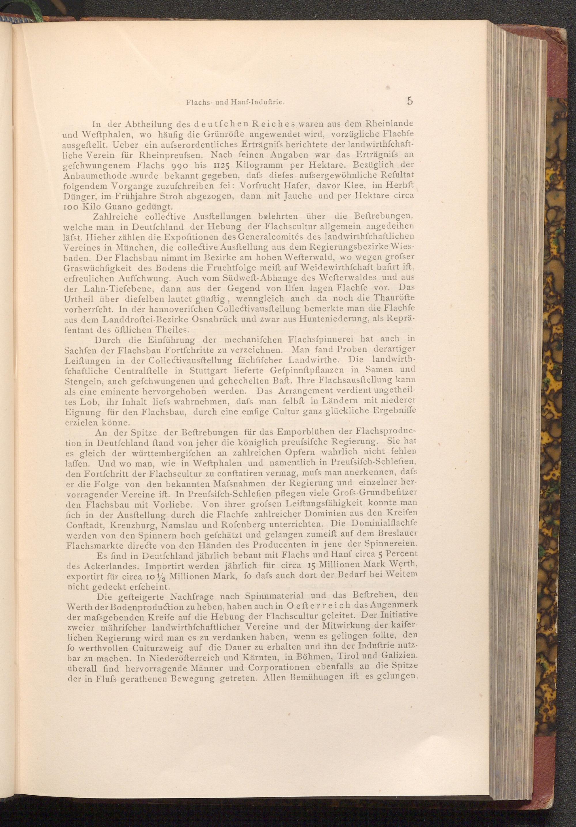 Die gefteigerte Nachfrage nach Spinnmaterial und das Beftreben, den Werth der Bodenproduction zu heben, haben auch in O efterreich das Augenmerk der mafsgebenden Kreife auf die Hebung der Flachscultur geleitet. Der Initiative zweier mährifcher landwirthfchaftlicher Vereine und der Mitwirkung der kaiferlichen Regierung wird man es zu verdanken haben, wenn es gelingen follte, den fo werthvollen Culturzweig auf die Dauer zu erhalten und ihn der Induftrie nutzbar zu machen. In Niederöfterreich und Kärnten, in Böhmen, Tirol und Galizien, überall find hervorragende Männer und Corporationen ebenfalls an die Spitze der in Flufs gerathenen Bewegung getreten. Allen Bemühungen ift es gelungen,