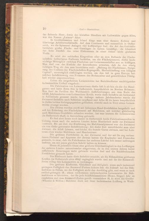 Die Blüthezeit hatte dieíe Induftrie erreicht, als die Nähmafchine gröfseren Kreifen( in Oefterreich circa 1865) zugänglich wurde und mit ihr der BaumwollZwirn anfing den Leinenzwirn zu verdrängen.
