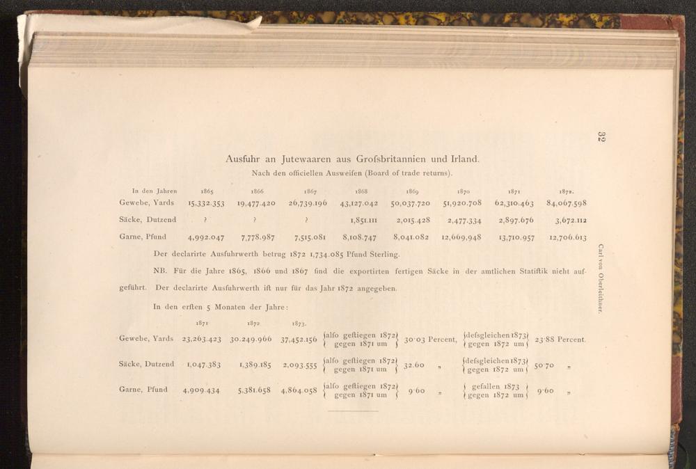 Ausfuhr an Jutewaaren aus Grofsbritannien und Irland.
