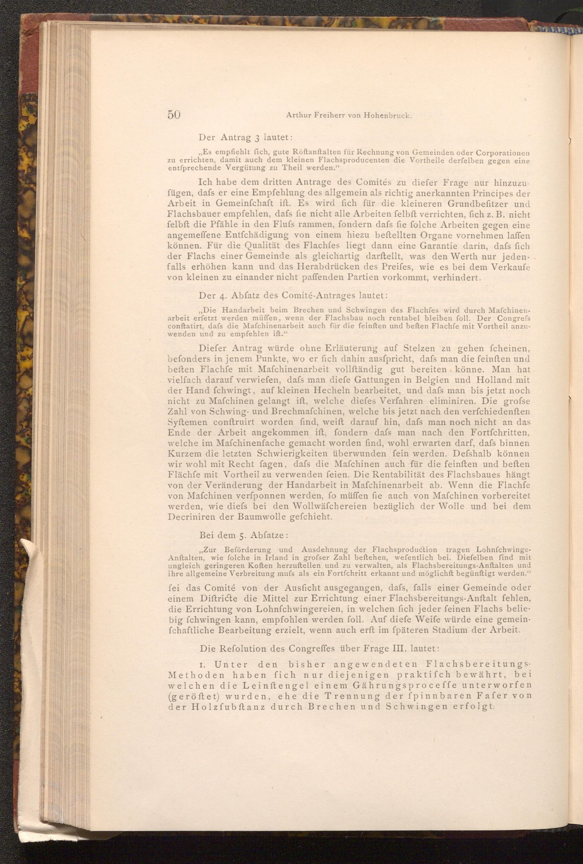 , Die Handarbeit beim Brechen und Schwingen des Flachfes wird durch Maschinenarbeit erfetzt werden müffen, wenn der Flachsbau noch rentabel bleiben foll. Der Congrefs conftatirt, dafs die Maſchinenarbeit auch für die feinften und beften Flachfe mit Vortheil anzuwenden und zu empfehlen ift."