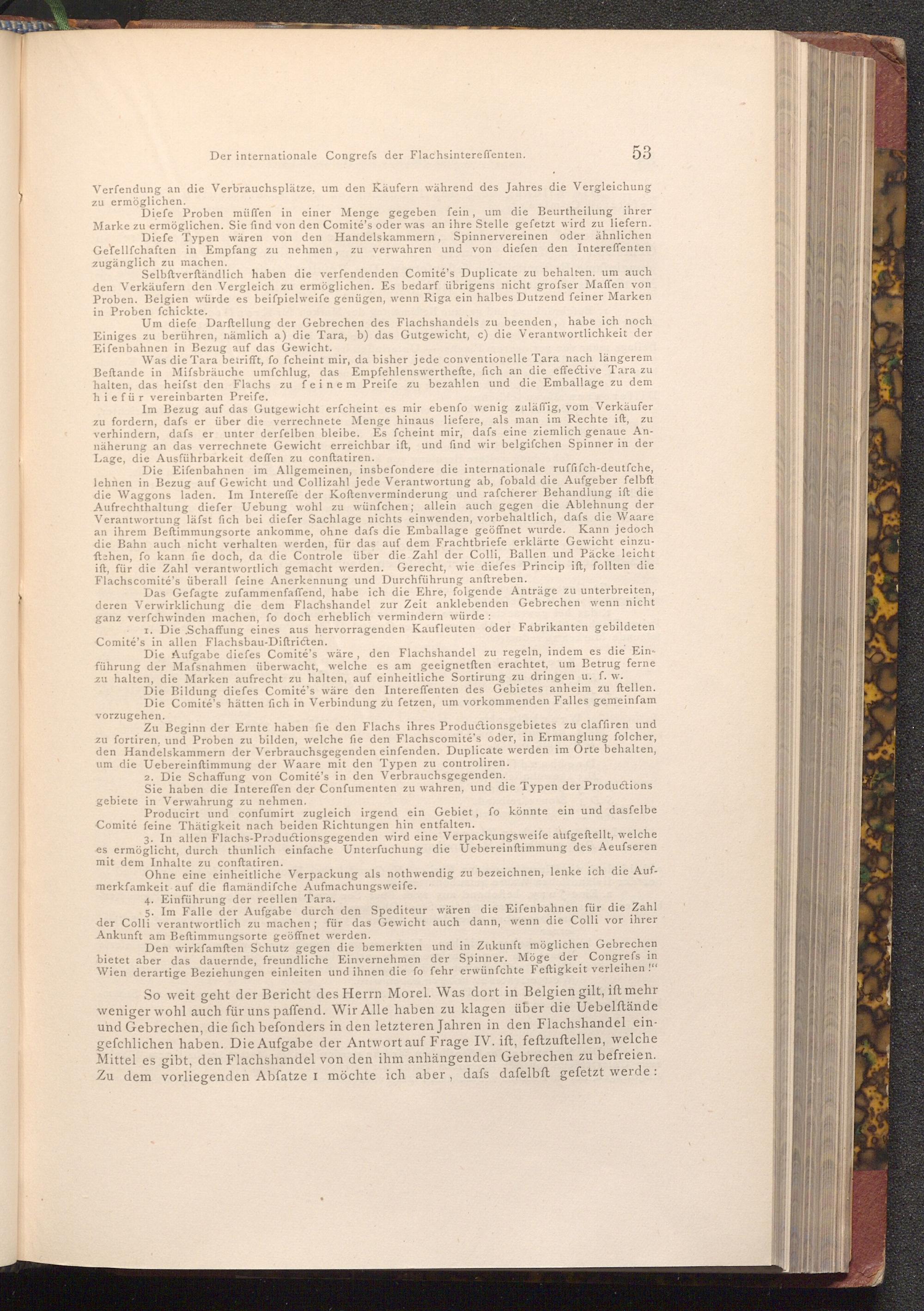 So weit geht der Bericht des Herrn Morel. Was dort in Belgien gilt, ift mehr weniger wohl auch für uns paffend. Wir Alle haben zu klagen über die Uebelſtände und Gebrechen, die fich befonders in den letzteren Jahren in den Flachshandel eingefchlichen haben. Die Aufgabe der Antwort auf Frage IV. ift, feftzuftellen, welche Mittel es gibt, den Flachshandel von den ihm anhängenden Gebrechen zu befreien. Zu dem vorliegenden Abfatze I möchte ich aber, dafs dafelbft gefetzt werde: