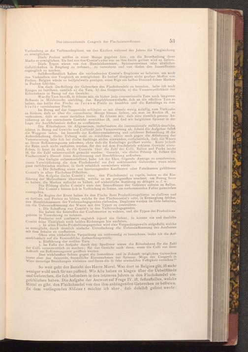 Den wirkfamften Schutz gegen die bemerkten und in Zukunft möglichen Gebrechen bietet aber das dauernde, freundliche Einvernehmen der Spinner. Möge der Congrefs in Wien derartige Beziehungen einleiten und ihnen die fo fehr erwünfchte Feftigkeit verleihen!"