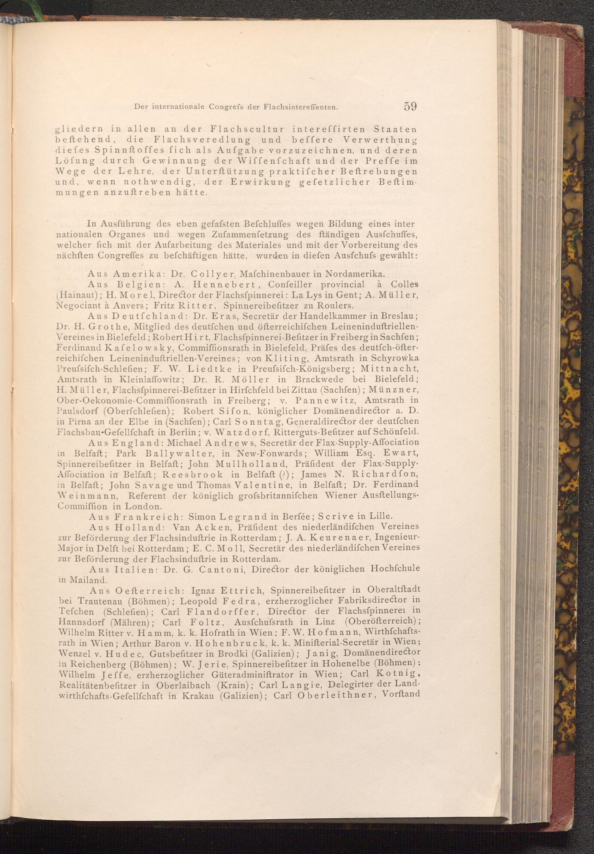 Aus Amerika: Dr. Collyer, Mafchinenbauer in Nordamerika. Aus Belgien: A. Hennebert, Confeiller provincial à Colles ( Hainaut); H. Morel, Director der Flachsfpinnerei: La Lys in Gent; A. Müller, Negociant à Anvers; Fritz Ritter, Spinnereibefitzer zu Roulers.